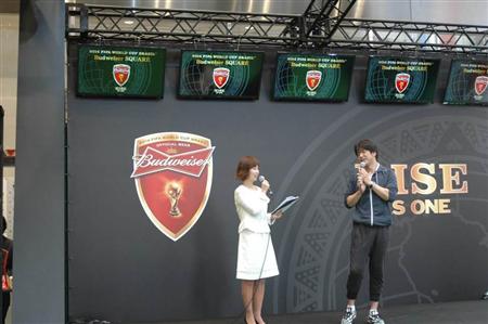 キリンビールも12日、日本でライセンス製造・販売しているW杯公式ビール「バドワイザー」のイベント会場を渋谷にオープンした。キリンは日本代表公式パートナーでもあり、日本代表、W杯の両方を活用した展開を進める。