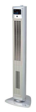 扇風機とヒーター機能を一体化した送風機能付きファンヒーター。縦型の本体に温風(下側)と送風(上側)の独立したファンとモーターを搭載。人の動きの変化を感知して自動で運転オン・オフにする「人感センサー機能」やオフタイマーなども備えた。