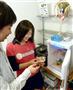 中元コーナーの客に高級ビールを売り込むアサヒビールの小路明善社長=20日午前、東京都中央区の高島屋日本橋店【拡大】