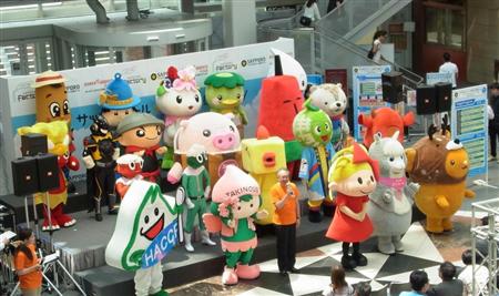 地元に愛されるロングセラーの飲み物「リボンナポリン」の、ありがとうの感謝、さらに次の100年を目指すプロジェクト。道内140のゆるキャラをデザインした、8種類のリボンナポリンのコラボボトルを発売している。今回は、28自治体、20体のキャラクターが集まりイベントを盛り上げた。