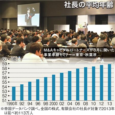 経営者の高齢化で中小企業の後継者不足が深刻となる中、事業承継を支援するビジネスが活況を呈している。M&A(企業の合併・買収)の仲介サービスでは独立系の会社が実績を積み上げ、採算性の低さを理由に敬遠していた大手金融機関も参入。転職支援などで得たノウハウを生かし、人材派遣会社も後継者探しのサポートに乗り出している。支援ビジネスの広がりで後継者難への対応が進めば、日本経済を支える中小企業の活性化にもつながりそうだ。