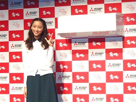 三菱電機が発売するエアコン「霧ケ峰Zシリーズ」の新製品をPRする女優の杏さん=26日、東京都江東区【拡大】