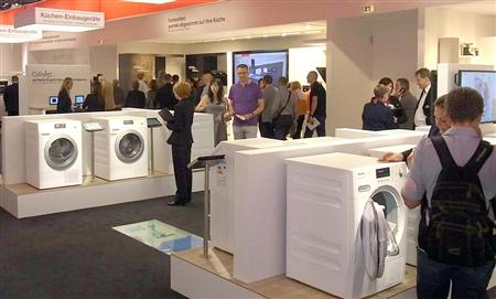 パナソニックが白物家電の基準とする独ミーレのブース。最新の洗濯機を多く出展=5日、ベルリン【拡大】