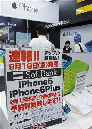 家電量販店に設置された「iPhone6」予約の告知=10日、東京都千代田区の「ヨドバシカメラマルチメディアAkiba」【拡大】