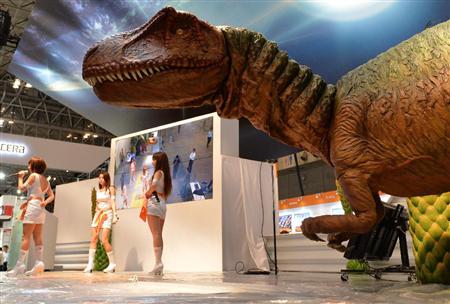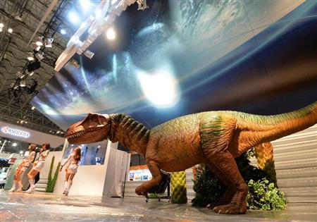 7日に幕張メッセ(千葉市美浜区)で開幕した「シーテックジャパン2014」では、電子部品大手タイコエレクトロニクスジャパンが出展したスマートフォンでコントロールできる恐竜ロボット「TEサウルス」に来場者から歓声がわいた。
