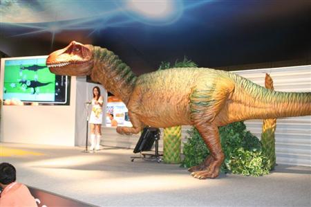 スマホ上の恐竜イラストの各部位を動かすと、ロボットが首を上げたり、ジャンプしたりするほか、スマホを振るとほえるというユニークな仕掛けで、タイムラグなく自然な動作を実現していた。