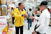 キリンビールは、第3のビール「のどごし〈生〉」の「絶対もらえる!キャンペーン」告知のため、大規模な商品サンプリングを展開する。14日、第1弾として東京都杉並区の西友荻窪店で、キリンビールマーケティングの布施孝之社長が、来場者にのどごし〈生〉を配布した。各地でも開催し、計12万本を配布する予定だ。
