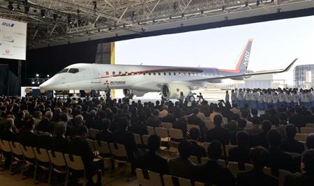 三菱航空機は、親会社で機体を組み立てた三菱重工業の小牧南工場で完成披露の式典を開催、官民の関係者約500人が出席した。三菱重工の大宮英明会長は式典で「世界に誇れるメード・イン・ジャパンの製品がようやく夢から現実のものになった」と述べた。