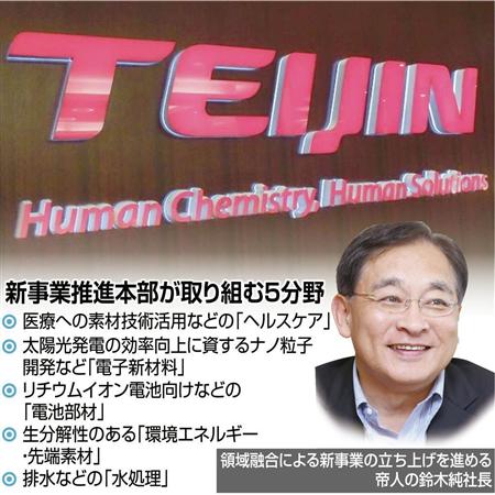 帝人が、素材や医薬品など傘下事業の「領域融合」による新事業の立ち上げを本格化している。今年4月にグループ内の事業や技術の橋渡し役を担う「新事業推進本部」が発足。10月には領域融合の第1弾となる医薬品の治験に向け、岩国事業所(山口県)に約20億円を投じて新製剤棟を着工した。新事業推進本部は幅広い領域を手掛けるグループの総合力を生かし、将来の成長の芽を育てる。