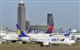 福岡空港に着陸したスカイマーク機(手前)と離陸を待つ日本航空機=21日午後【拡大】