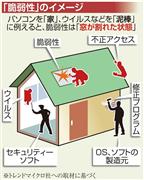 パソコンの「脆弱(ぜいじゃく)性」という言葉をご存じだろうか。ソフトやウェブサイトなどが抱えるセキュリティー上の欠陥のことだ。これらを放置したままだと、コンピューターウイルスへの感染や不正アクセスの憂き目に遭う可能性が高まってしまう。対策として、全てのソフトのこまめなアップデートやセキュリティーソフトの導入などが必要だ。(本間英士)