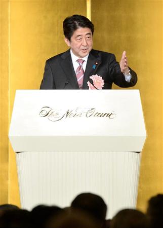 経団連など経済3団体共催の新年祝賀パーティーが6日、都内のホテルで開かれた。安倍晋三首相はあいさつの中で、法人税減税に関し、「今後もさらに(引き下げ幅の)上乗せを目指していきたい。これは皆さんにかかっている」と述べ、出席した大手企業の経営者らに賃上げや設備投資増などを改めて訴えた。経済好循環の“主役”を任された出席者らは、攻めの経営への意気込みを語った。
