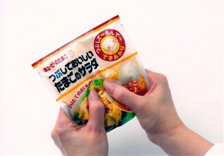 レトルトパウチ容器に、まるごと2個のゆで卵とマヨネーズベースのドレッシングが一緒に入っており、袋ごと卵をつぶしてもむだけで、簡単に卵サラダを作ることができる。ゆで卵を作る時間や、混ぜるための調理器具を用意する手間が省ける。