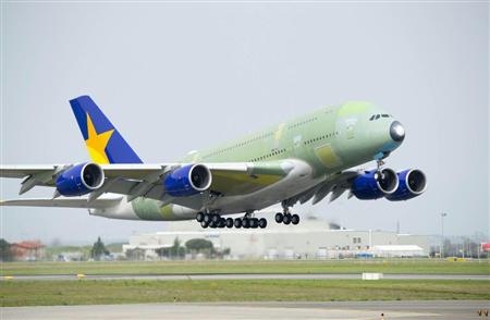 スカイマークが発注した「A380」の初号機。昨年4月に仏トゥールーズで初飛行を終えた約3カ月後、購入契約は解除された(エアバス提供)【拡大】