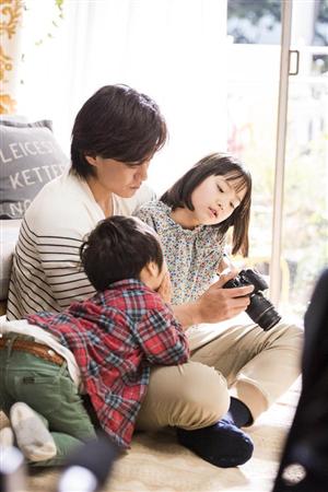 新CM「これがウチの一眼レフ」編では、初めてパパ役を務め、自宅のリビングで、元気に走り回る子どもたちとふれあいながら、「D5500」で日常の姿を撮影して楽しむ、という内容。カメラで撮影した後に、パパ役の小栗さんと娘、息子の子役の3人で画像をみるシーンは、実の親子にみえるほどで、カメラの魅力も同時に伝わる、ほのぼのとした作りだ。