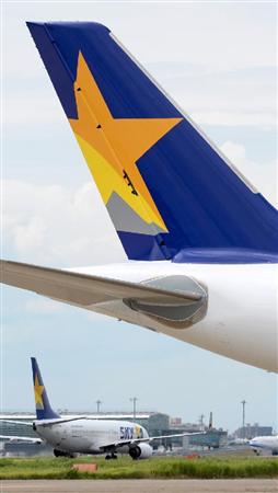 スカイマーク機=東京都大田区の羽田空港(寺河内美奈撮影)【拡大】