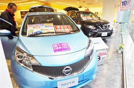 販売店はエコカー減税の制度厳格化で消費者の税負担が増える車種の売り込みを強化している=23日、日産プリンス東京販売駒沢店(東京都世田谷区)【拡大】