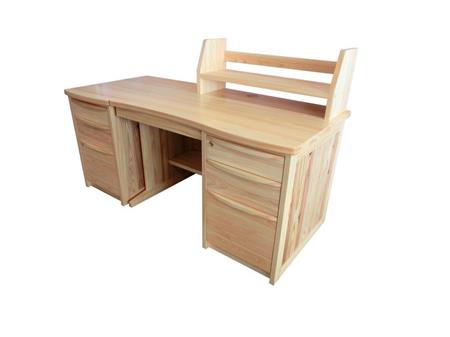 事務机、応接セット、書棚、テーブルの4種類で、ビジネスシーンを意識したつくりになっている。今後は県農林部内の一部執務室や特別支援学校、県健康ステーションなどにおいてモデル家具として設置するとともに、市町村や民間事業者へ広くPRしていく予定だ。