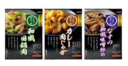 道場六三郎氏監修の「銀座ろくさん亭」シリーズに新アイテム。食材を加えて炒め、煮込むだけで手軽に作れる“和風そうざいの素”。種類は「和風回鍋肉」「カレー肉じゃが」「なすの和風味噌(みそ)炒め」の3種類。いずれも1袋2人前で270円。販売中。