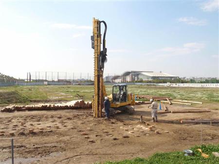 小中規模の建築物にも施工可能な丸太による液状化対策工法【拡大】