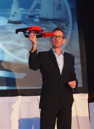 「ドローン」と呼ばれる小型の無人飛行機を製造・販売する仏パロットは12日、消費者向けドローン「Bebop Drone(ビバップ・ドローン)」を4月上旬に発売すると発表した。価格は7万6572円から。インターネットでの通販のほか、家電量販店での販売も予定している。手軽に買える高性能なドローンが、国内での普及につながるか注目される。