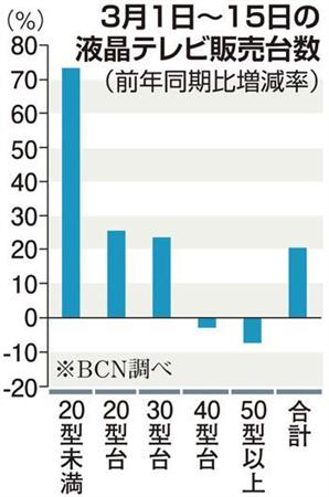 「例年3~4月にかけては1人暮らしを始める学生、社会人が増加することから小型テレビの販売数量は増加傾向にあるが、今年は1カ月早く、2月から小型テレビの販売が増加している」(業界関係者)