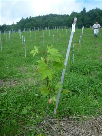 ゼブラが「里親」として成長を見守る苗木の1本=2014年8月、岩手県宮古市【拡大】