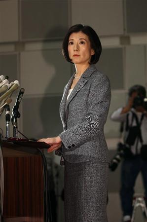 大塚家具の株主総会が終了し会見を行う大塚久美子社長=27日午後、東京都江東区(小野淳一撮影)