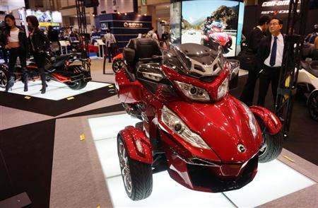 東京モーターサイクルショーでは中高年や女性層の開拓を狙い、三輪バイクも多く展示されている=27日、東京都江東区の東京ビッグサイト【拡大】