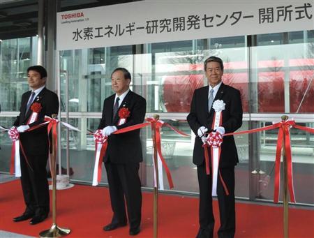 東芝は太陽光や風力、水力発電などの再生可能エネルギーを利用した発電システムや燃料電池を手がける。こうしたグループ内の技術を融合し、同センターで、水素を製造貯蔵し、有効活用するサイクルを構築する。