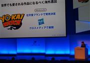 日野晃博社長は妖怪ウォッチについて、「社会現象とも言える状態になった。関連コンテンツはすべての分野で大ヒットし、関連市場は2000億円規模になっている」と強調。海外展開については「最大の力で進めたい」と述べた。詳細は明らかにしなかったが、任天堂ブランドでゲームソフトを提供するほか、ハズブロが玩具「妖怪メダル」などを販売するとみられる。