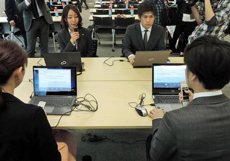 音声認識技術を活用、聴覚障害者も会議に参加できる富士通のソフトウエア=14日、東京都港区(黄金崎元撮影)【拡大】