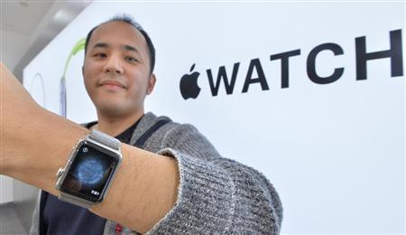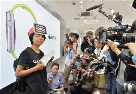 米アップルは24日、腕時計型端末「アップルウオッチ」の発売を世界9カ国で順次開始。日本では同日午前にソフトバンク販売店や伊勢丹新宿店、家電量販店などに予約ずみの人たちが訪れ、端末を受け取った。