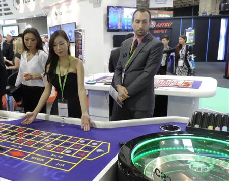 マカオで開幕したアジア最大級のカジノ産業総合展示会。日本のカジノ解禁をにらみ、日本のメーカーも多数出展している=19日【拡大】