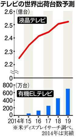 有機ELは、電圧をかけると発光する有機物でできた電子材料。材料そのものが発光するため、液晶には欠かせない背後の光源が不要で、液晶パネルよりも薄く、折り曲げたりもできる。明暗が鮮明で画質が高い上、消費電力も少なくて済むことから、スマートフォン向けといった中小型パネルだけでなく、テレビ向けの大型パネルの材料などとして電機各社が研究・開発を競っている。