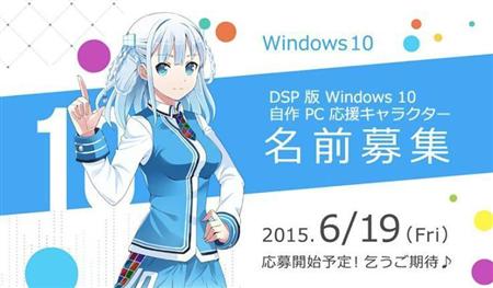 ブルーとホワイトを基調とした制服系コスチュームを身にまとうこのキャラは「DSP版ウィンドウズ10自作PC応援キャラ」という位置付けになっているが、名前は決まっておらず、今回公募されることとなった。