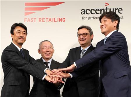 カジュアル衣料品店「ユニクロ」を展開するファーストリテイリングは15日、コンサルティング大手の米アクセンチュアとインターネット通販などのIT分野で協業すると発表した。年内をめどに合弁会社を設立する。ネットを通じ顧客がいつでもどこでも商品を買える環境を整えて販売機会を増やすほか、購買履歴のデータベースを使い新たな販売促進につなげる。