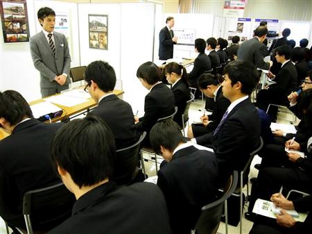 商品やシェアで世界一、日本一を誇る中小企業を集めた合同就職説明会。今年は売り手市場で、中小企業の採用は苦戦している=3月、大阪市【拡大】