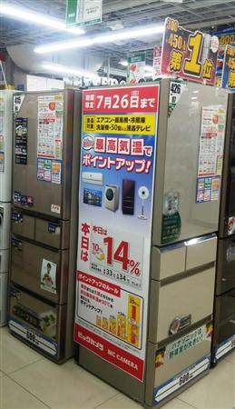 対象商品は、エアコンや冷蔵庫、扇風機などで、ビックカメラと傘下のコジマのほぼ全店とインターネット通販でも行う。同社は「ようやく暑くなってきたので、夏商戦を盛り上げたい」と意気込む。