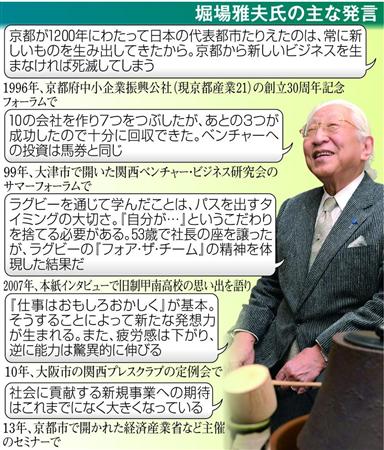 京都市に本社を置く世界的な計測機器メーカー、堀場製作所の創業者で、学生起業家の草分けだった同社最高顧問の堀場雅夫(ほりば・まさお)氏が、肝細胞がんのため、90歳で死去した。「仕事が楽しくない社員は会社を辞めてくれ」と繰り返し語り、「お疲れさま」という言葉を嫌った。今ならパワハラと思われるような態度かもしれないが、そこには「おもしろく仕事をした人には、それだけの恩恵を神様が与えてくれる」という信念が込められ、むしろ多くの社員の心をつかんだ。