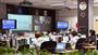 ウェザーニューズの航空会社向けサービスのモニター画面に映し出された台風10、9、11号(下部の中央左から)の雨雲。積乱雲が発達しているエリアなどを赤色で警告表示している(同社提供)【拡大】