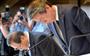 東芝の利益水増し問題で経営刷新委員会に出席する室町正志社長=29日午後、東京都港区の東芝本社(大西正純撮影)【拡大】