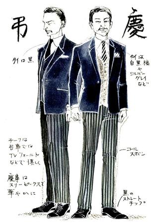 でもこのディレクターズスーツ、現在の日本では結婚式などでも、着るにふさわしいとされるのは、新婦の父とか親族のみとされちゃっています。それって変だと思うんですよね。だって、ダークスーツより格式の高い「準礼装」として、式典などへの参加の時は着用すべきものなんです。