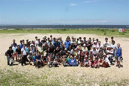 関西遊技機商業協同組合(関西遊商、理事長・草加和徳氏)は7月25日、大阪府貝塚市の二色浜で海岸清掃ボランティア作業を実施した。草加理事長以下、組合員やその家族111人が参加し、炎天下で汗を流した。