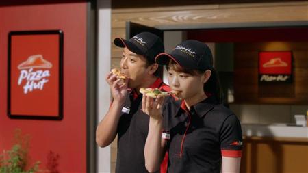 人気アイドルグループ「乃木坂46」のメンバーとして活躍する西野七瀬さんが、店長を務める架空の店舗「ピザハット乃木坂店」。かわいらしい西野さんと年上のクルー役の俳優、ムロツヨシさんの掛け合いが見どころで、これまでに放映されたCMも話題となってきた。最新作「おどろきを、もっと!」編は2人の掛け合いに加え、映画のような壮大な設定の映像などにも注目だ。