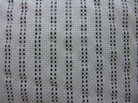 この布地は、帝人が今年1月にウエアラブル機器の展示会で披露した「圧電ファブリック」。展示会では、Yシャツやシューズの中敷き、クッションカバーも紹介した。