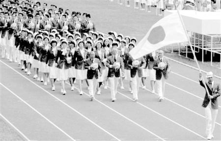 1976年7月に行われたモントリオール五輪の開会式で入場する日本の選手団。同市の住民は21世紀に入っても五輪関連の借金を税金で支払い続けた【拡大】