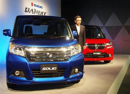 スズキは26日、主力小型車「ソリオ」と「ソリオ バンディット」を全面改良し、国内で販売を始めたと発表した。電動モーターが加速を助けるハイブリッド技術を同社の小型車としては初めて一部車種で採用し、燃費性能を1リットル当たり最高27.8キロと従来モデルから約9%向上をさせた。ソリオなど小型車の売り上げを伸ばすことで、軽自動車に依存する経営体質からの脱却を目指す。