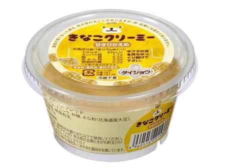 北海道産大豆を100%使用したきな粉の香ばしさが特徴のクリーム。パンに塗るだけでなく、菓子作りにも使える。保存料、着色料、香料は不使用。75グラム146円。販売中。