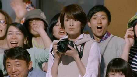 吉瀬さんは幼稚園の息子を持つママの設定。カメラ初心者で、徒競走でゴールテープを切る息子の決定的瞬間を懸命に撮影しようとしているが、緊張して大きな不安に駆られている。